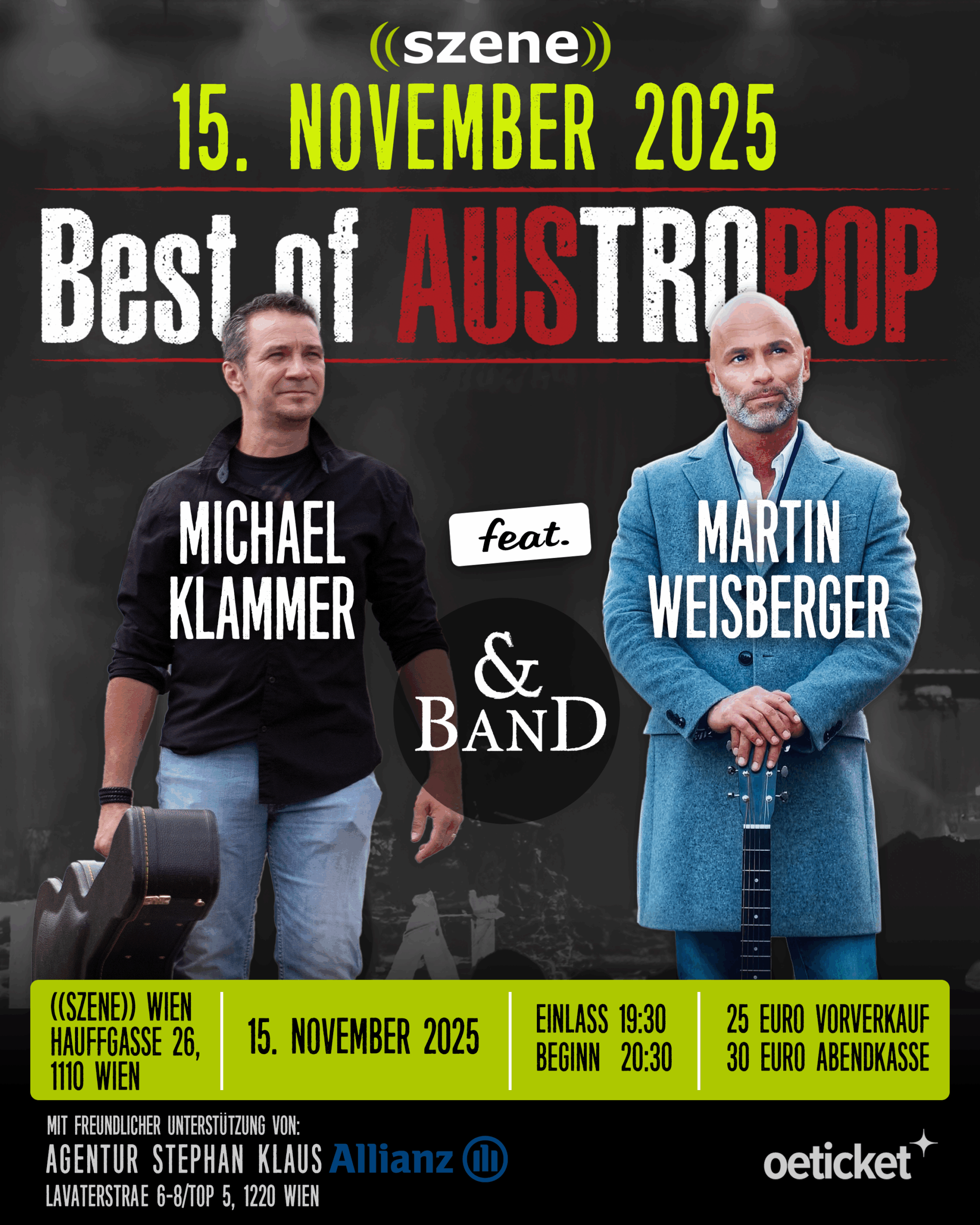 Vorverkauf: 25 € (bitte PN (Facebook) oder E-Mail an office@michaelklammer.at oder martweisb@gmail.com)